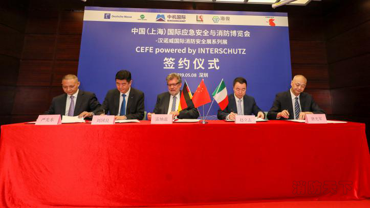 5月8日,德國漢諾威展覽公司、漢諾威米蘭展覽(上海)有限公司、中國機械國際合作股份有限公司、廣州立升展覽服務有限公司和廣東新海俊發展有限公司在深圳簽署合作協議,五家單位將于2019年11月6-8日在上海新國際博覽中心共同舉辦中國(上海)國際應急安全與消防博覽會(以下簡稱:CEFE Powered by INTERSCHUTZ)。