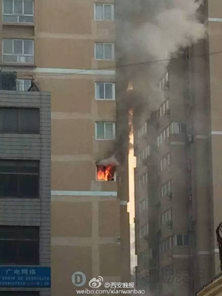 西安太白南路財政廳家屬院六樓起火