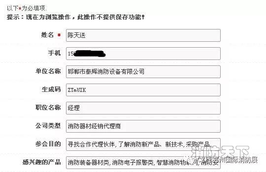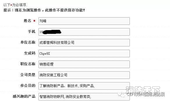 據(jù)2018第九屆鄭州國(guó)際消防展客服部負(fù)責(zé)人透露,截止目前,5月14日,來(lái)自全國(guó)各地的專(zhuān)業(yè)采購(gòu)商及個(gè)人通過(guò)CZFE鄭州國(guó)際消防展大會(huì)官網(wǎng)“www.czwb119.com”、官方微信公眾號(hào)“czwb119”進(jìn)行觀眾預(yù)登記的企業(yè)及個(gè)人達(dá)到15018條采購(gòu)信息,下面通過(guò)截圖提前來(lái)看下,部分專(zhuān)業(yè)采購(gòu)商感興趣的展品范圍;