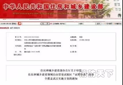 11月30日,住房和城鄉建設部印發住房和城鄉建設領域自由貿易試驗區“證照分離”改革全覆蓋試點實施方案的通知。