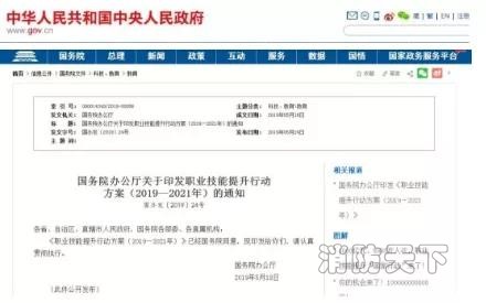 5月24日,國務院印發《職業技能提升行動方案(2019—2021年)》。