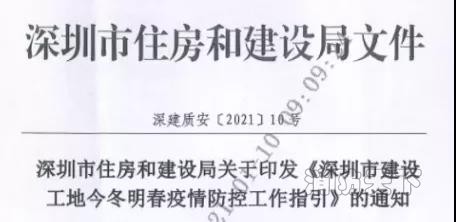 1月10日,深圳市繼北京后,住建局也快速引發(fā)了《深圳市建設(shè)工地今冬明春疫情防控工作指引》,明確了工地防疫要求。